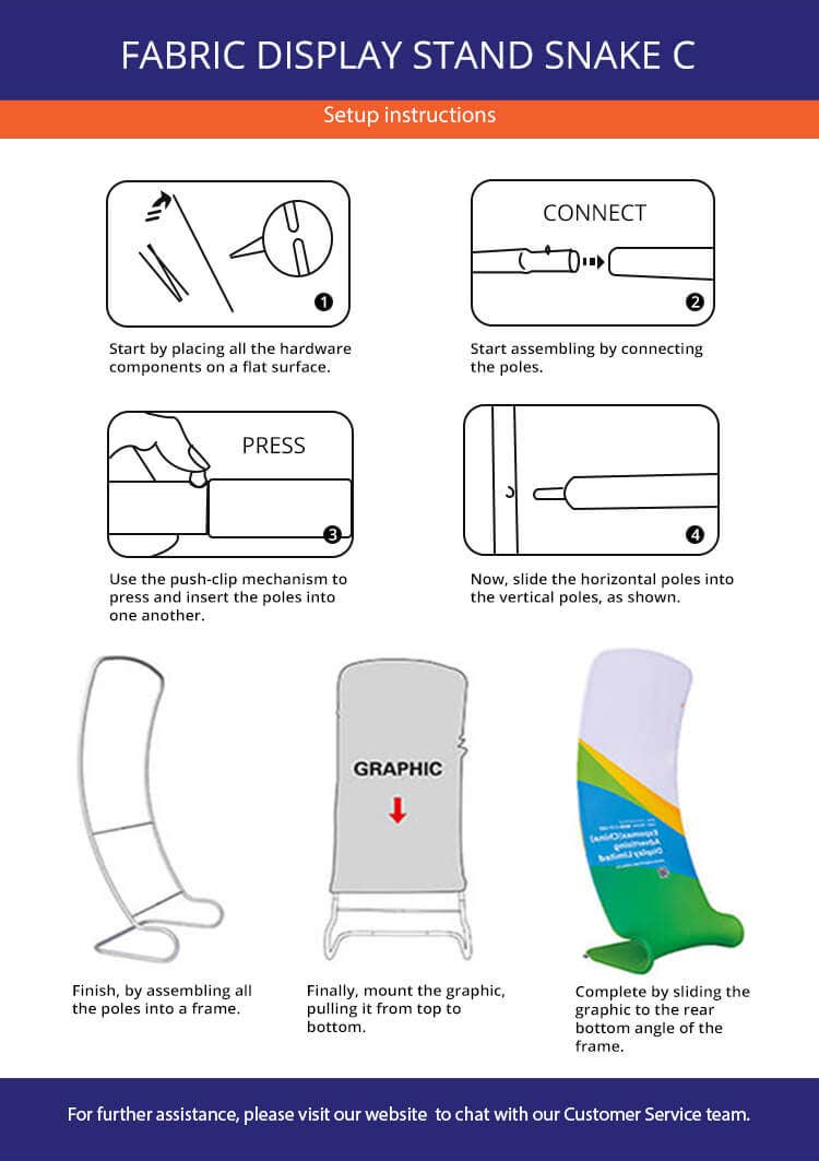 Showcase your business effectively with our snake-C fabric display stands. Engineered for high visibility and robustness, these stands are perfect for amplifying your brand's impact at exhibitions and events.