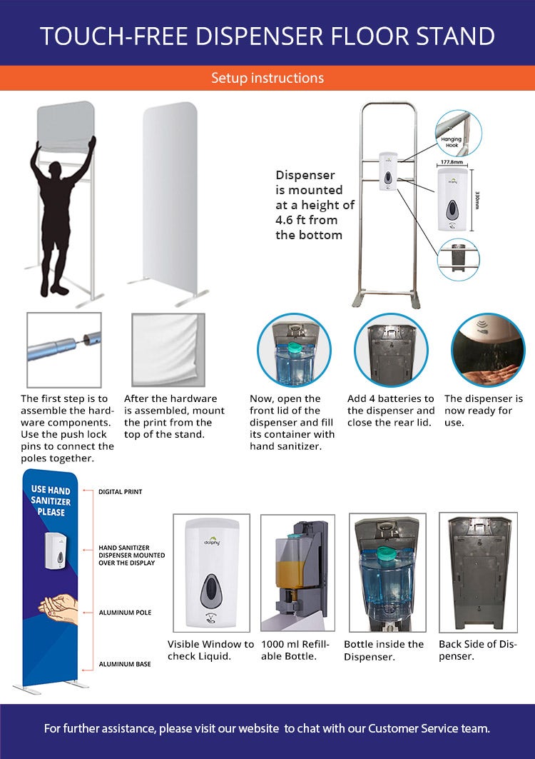 Therefore, this touch-free dispenser banner stand is perfect to prove its efficacy, especially during the present COVID-19 phase, where, every moment calls for active, prompt precautions and safety measures to block the passage for germs to spread further. Be it an indoor or outdoor requirement, display them anywhere without being bothered about the print quality or color-fading aspects as full-color, dye-sublime prints have been utilized in the graphic designing. The banner fabric is easy to maintain and wash and, therefore, we suggest you go through our graphics care instructions section for better clarity on hand wash, drying options, and removing wrinkles.